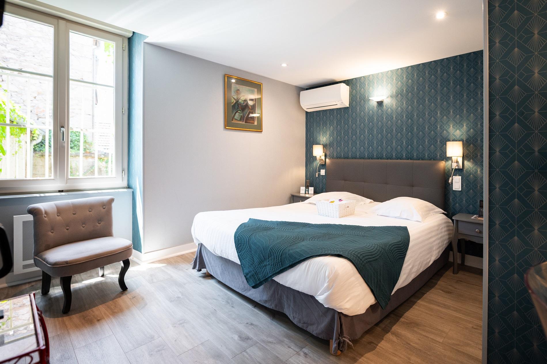 Large air-conditioned room - Bathroom with bath & toilet - flat screen TV, minibar & courtesy tray - Free access to the swimming pool (in an partner hotel near by) wifi & parking - Possibility of covered garage at an additional cost - Double bed 180 * 190 or 2 single beds 2 x 90* 190